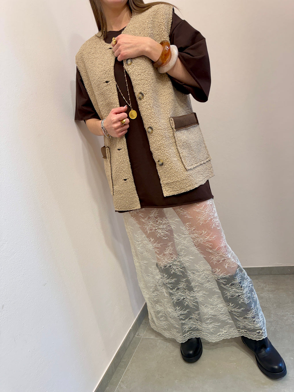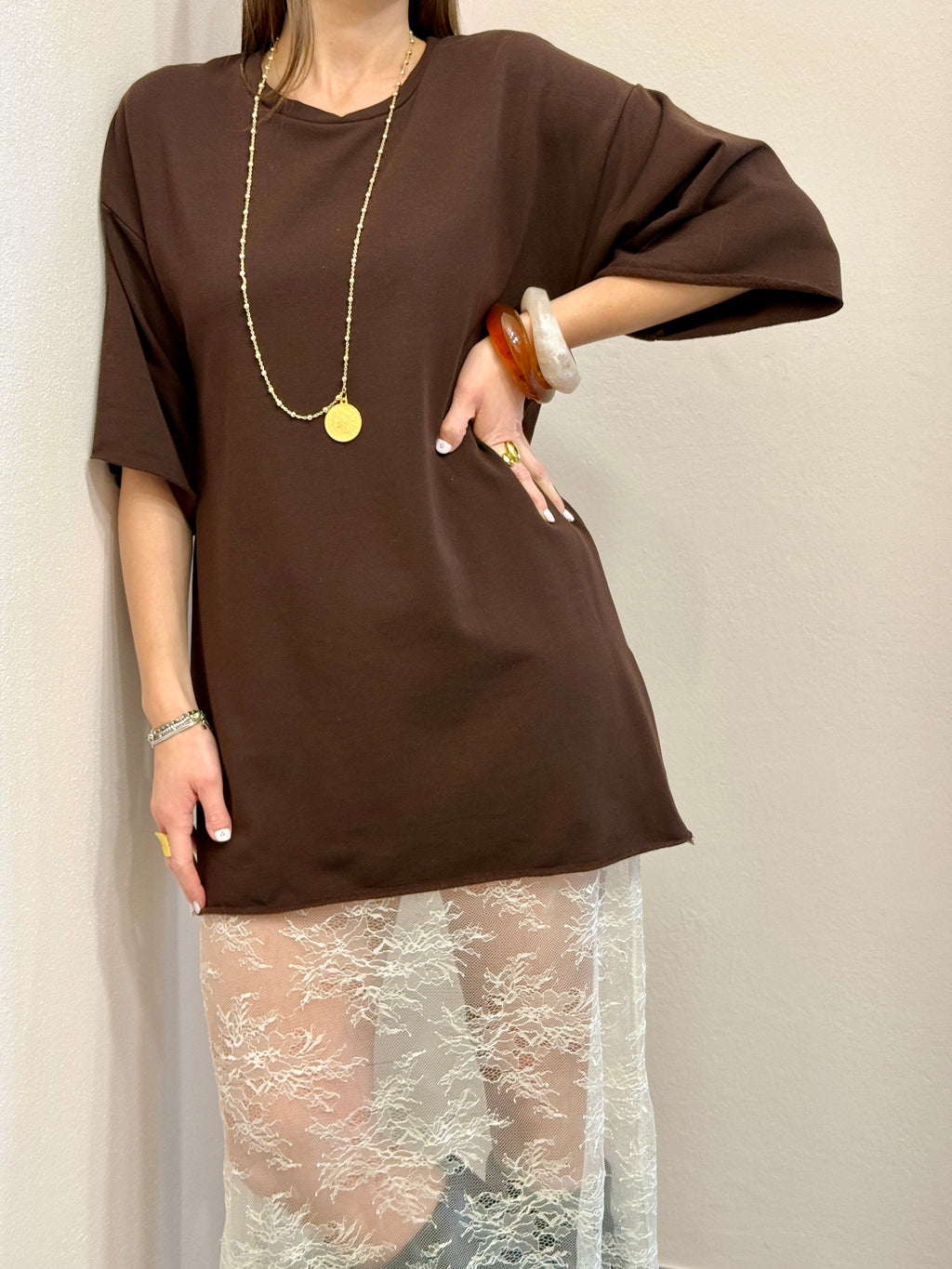 Abito in felpa cioccolato + pizzo Susy Mix