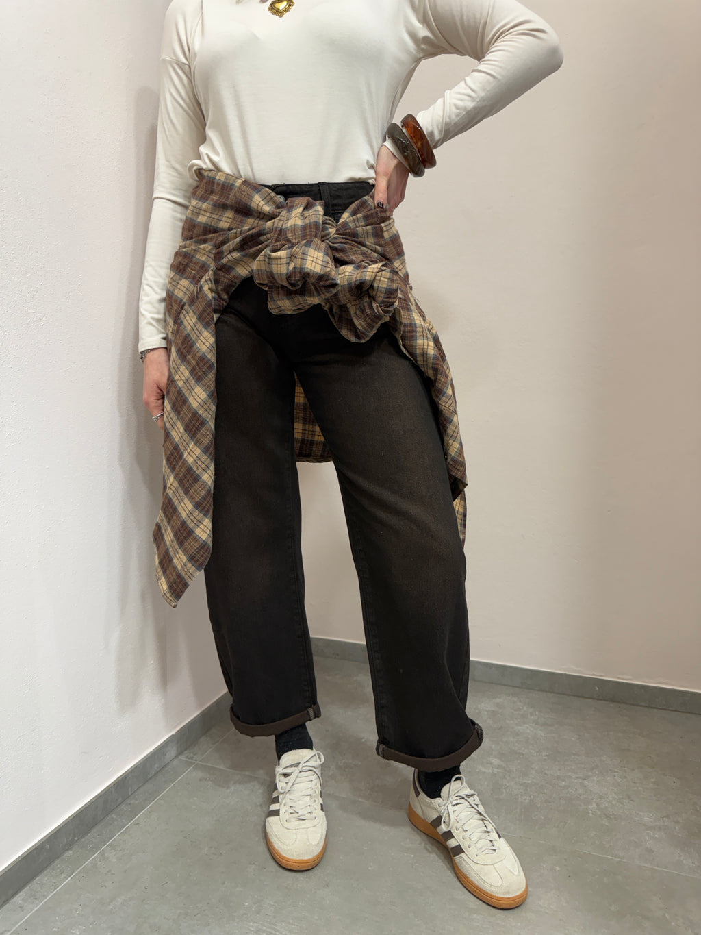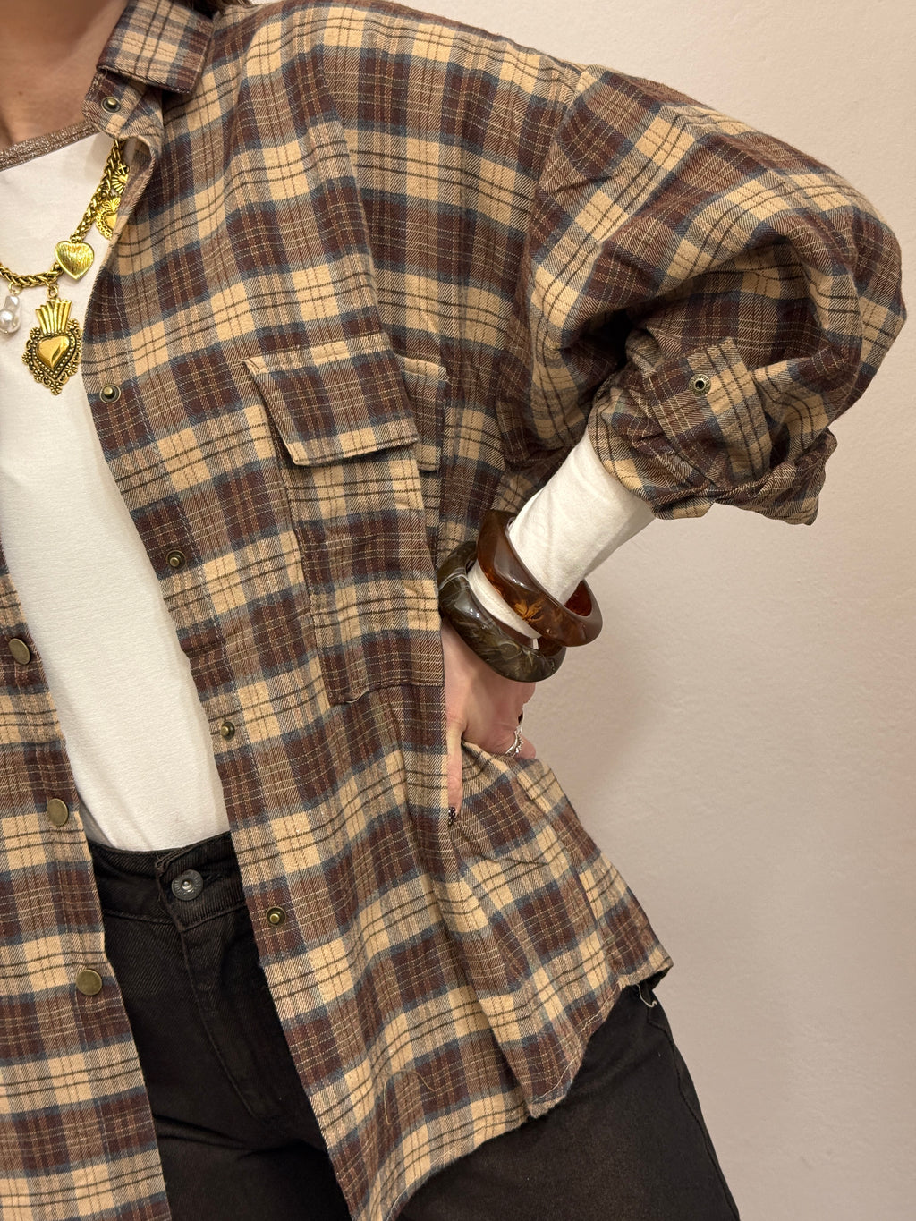 Camicia check in panetto beige
