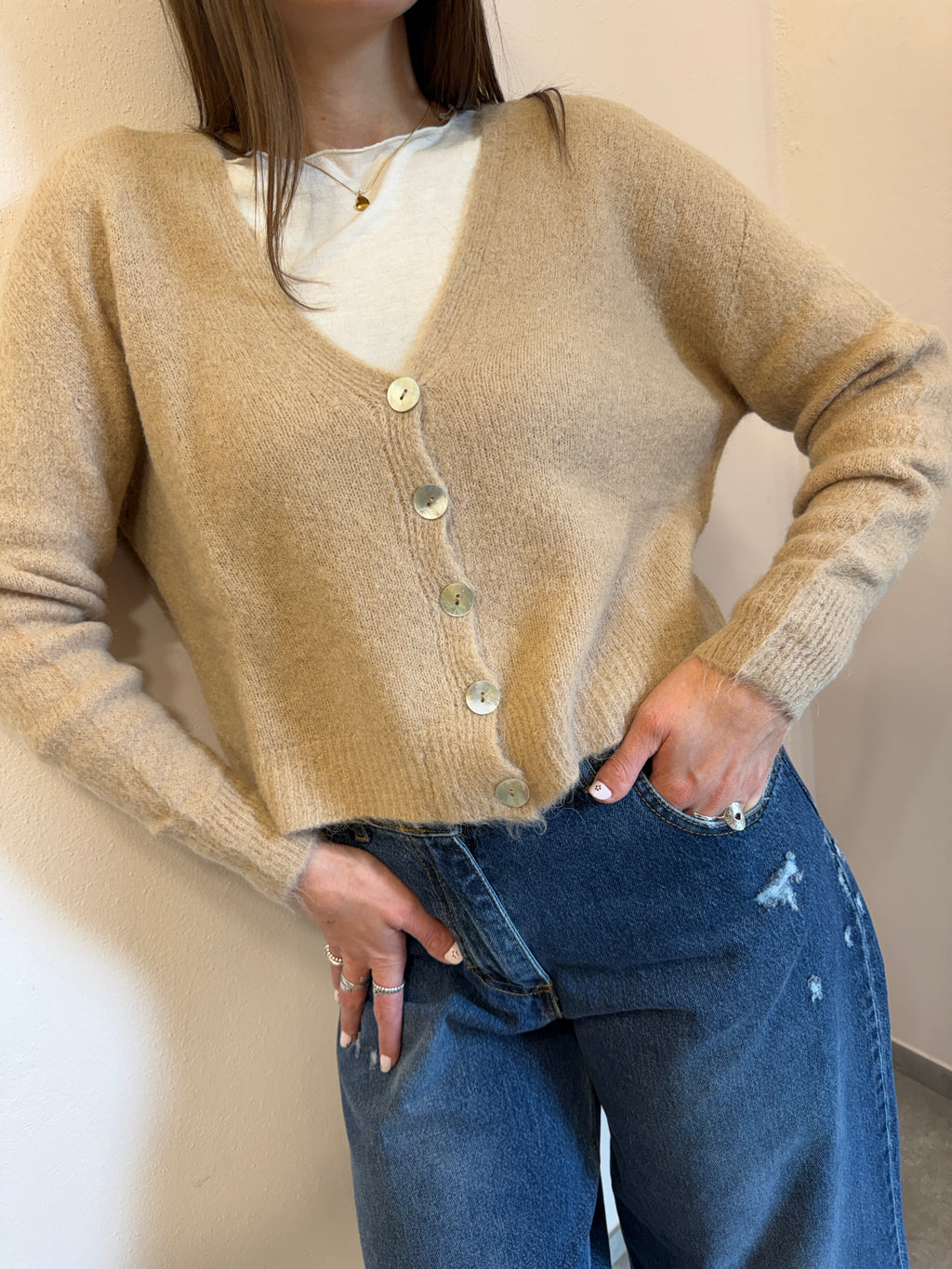 Cardigan con bottoni in madreperla biscotto Kontatto