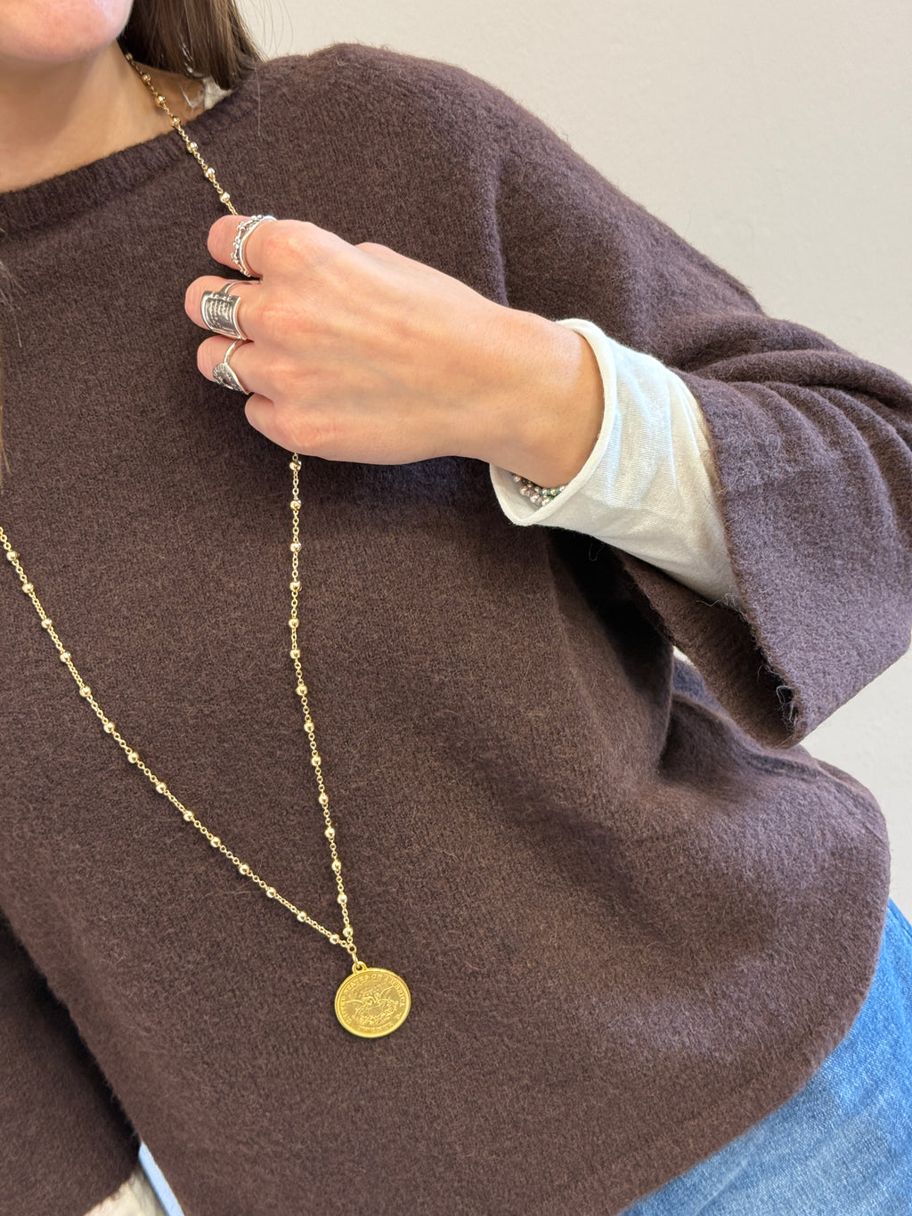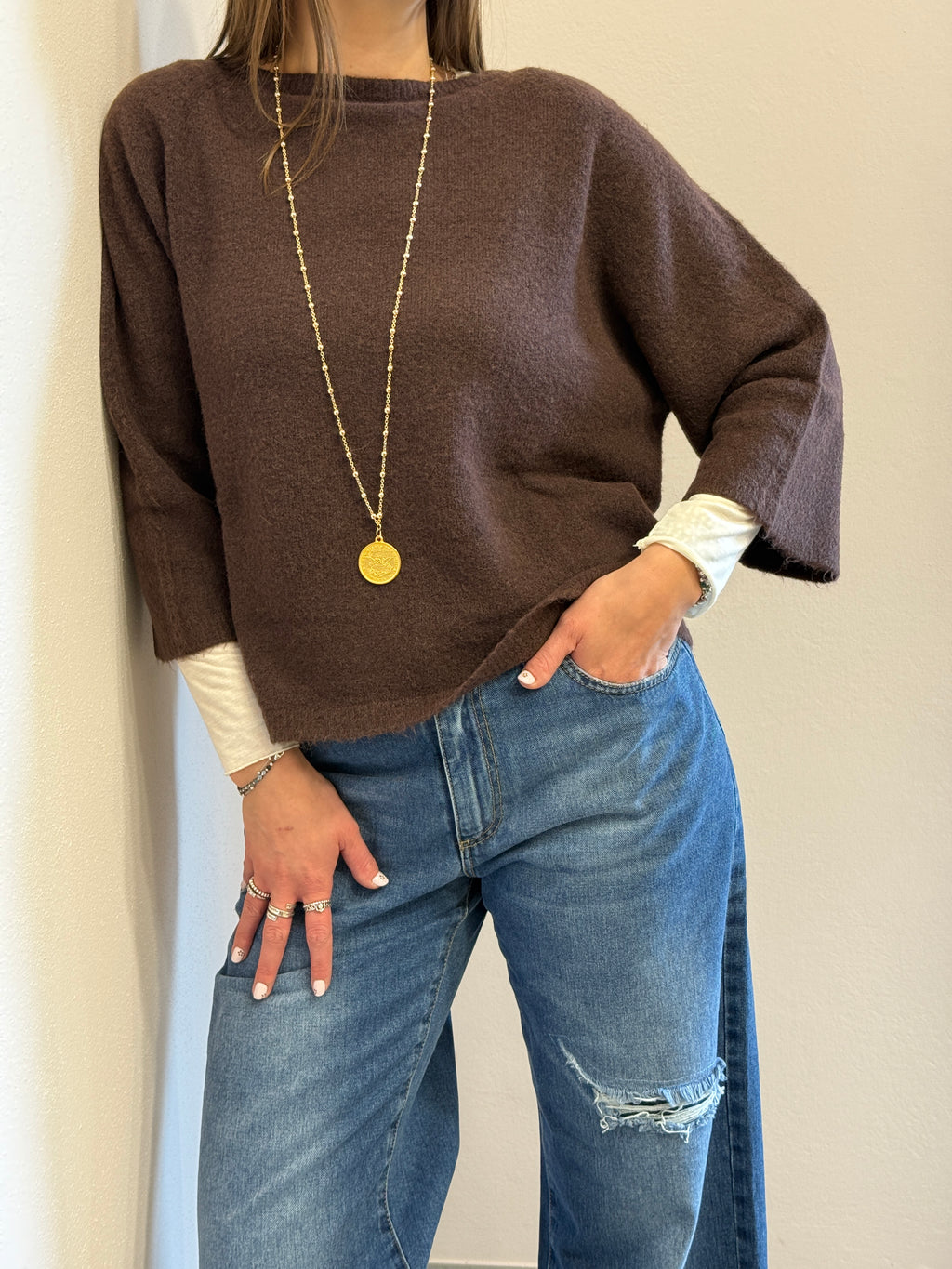 Maglione in alpaca manica 3/4 color cioccolato Kontatto
