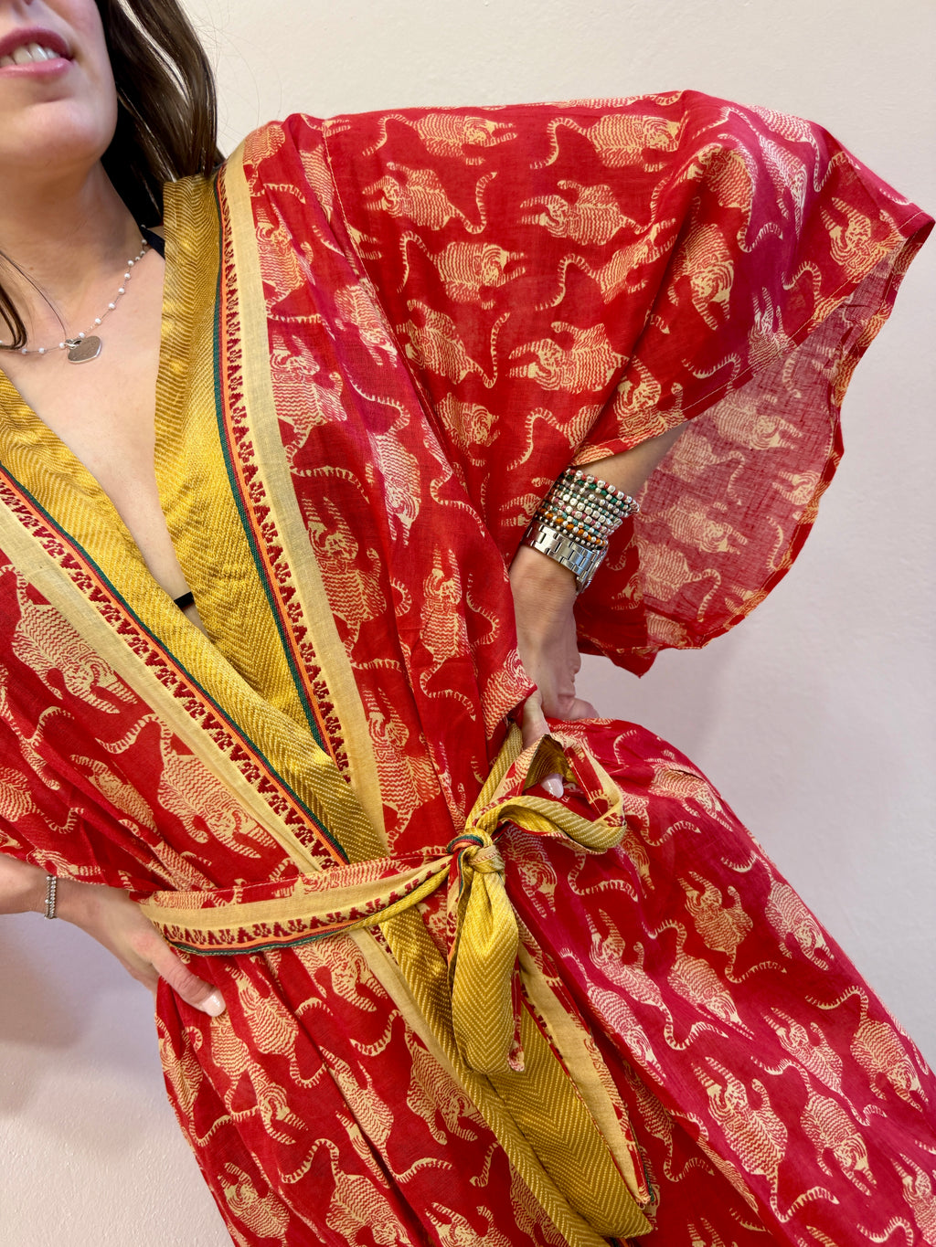 Perfetto sopra il costume, il kimono lungo  aggiunge eleganza al look da spiaggia. Ideale per passeggiate, piscina o aperitivi al tramonto, avvolge la silhouette con leggerezza e stile.
