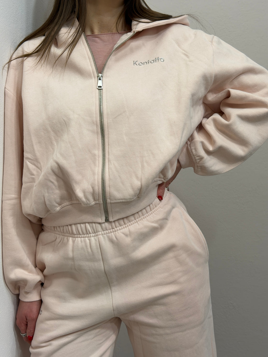 Felpa Cropped con zip di chiusura, cappuccio. Interno felpato caldo . ( Possibile abbinamento al suo pantalone )