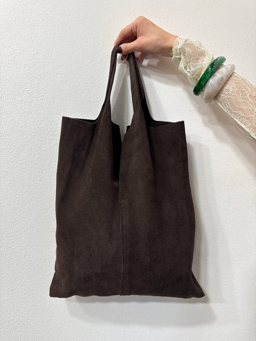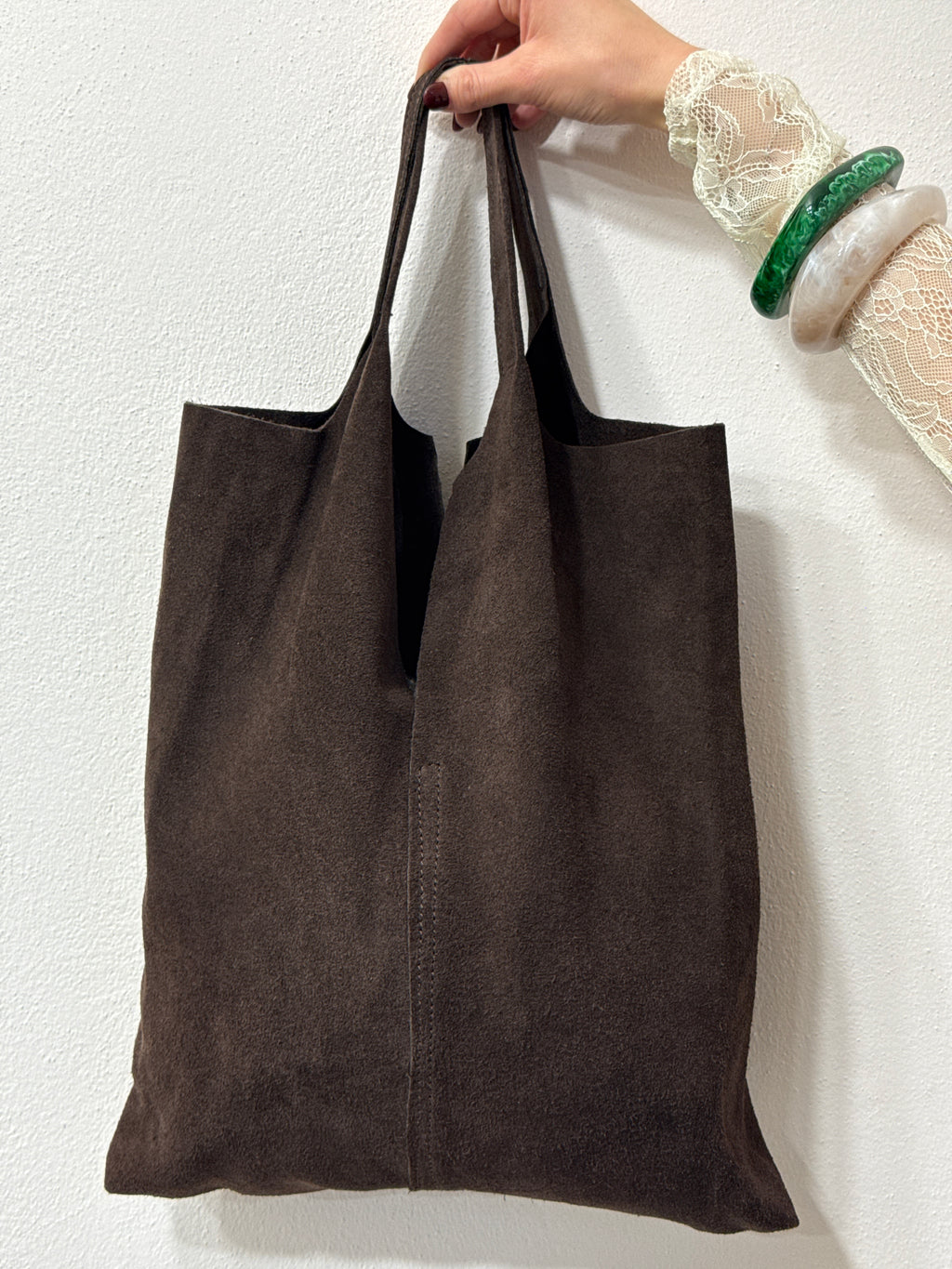 Borsa shopper in suede cioccolato